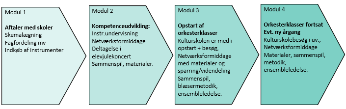 De deltagende skoler afholder fælles sammenspilsformiddage for eleverne og en fælles julekoncert.